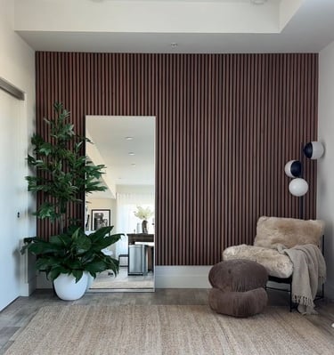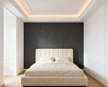 Ciptakan suasana kamar yang nyaman dan estetik dengan panel PVC. Pilihan motif beragam membuat ruang tidur terlihat lebih hangat dan tertata.