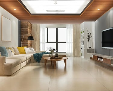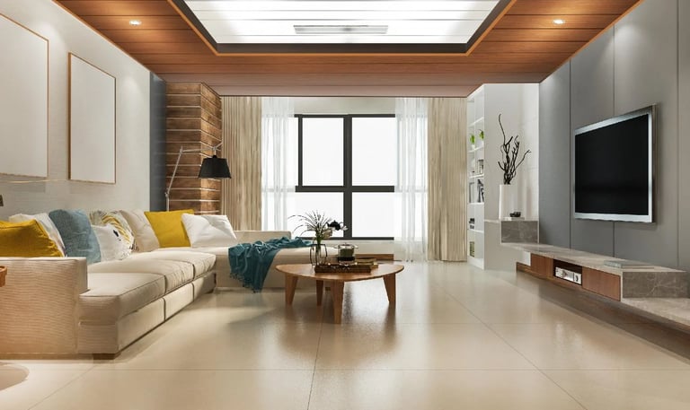 Tingkatkan kesan pertama rumah Anda dengan dekorasi ruang tamu berbasis PVC. Material bebas rayap dan motif premium membuat ruangan tampak lebih mewah.