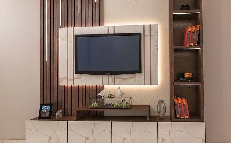 Hadirkan tampilan ruang keluarga yang lebih rapi dan modern dengan backdrop TV berbahan PVC. Desain kuat, mudah dibersihkan, dan memberikan kesan visual yang elegan.